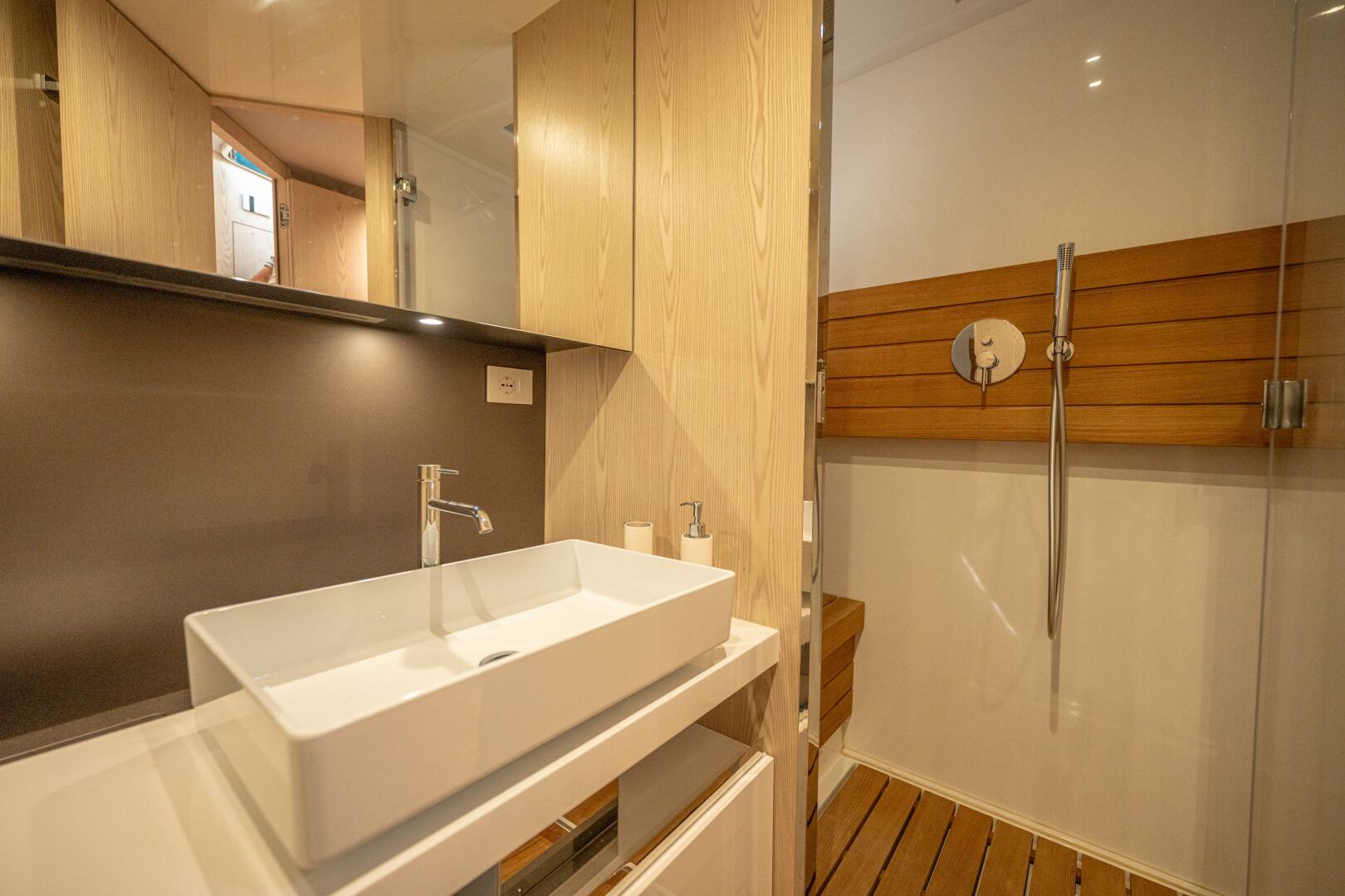 Below deck, two double staterooms showcase premium finishes and clever design, offering true luxury for day cruising or extended stays.