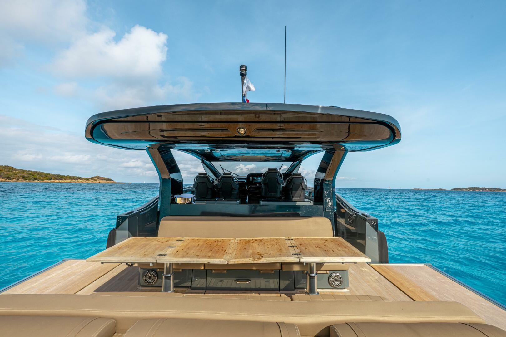 Powered by twin 725hp Volvo Penta IPS engines, the V-Adeus combines efficiency with exhilarating performance. Her deep-V hull design ensures superb seakeeping, stability, and a smooth ride even in challenging conditions, while offering a thrilling top speed of up to 38 knots.