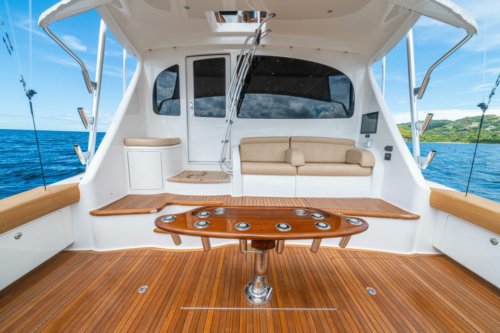 - Drip-dry foam flybridge cushions with upgraded bolster-style seating